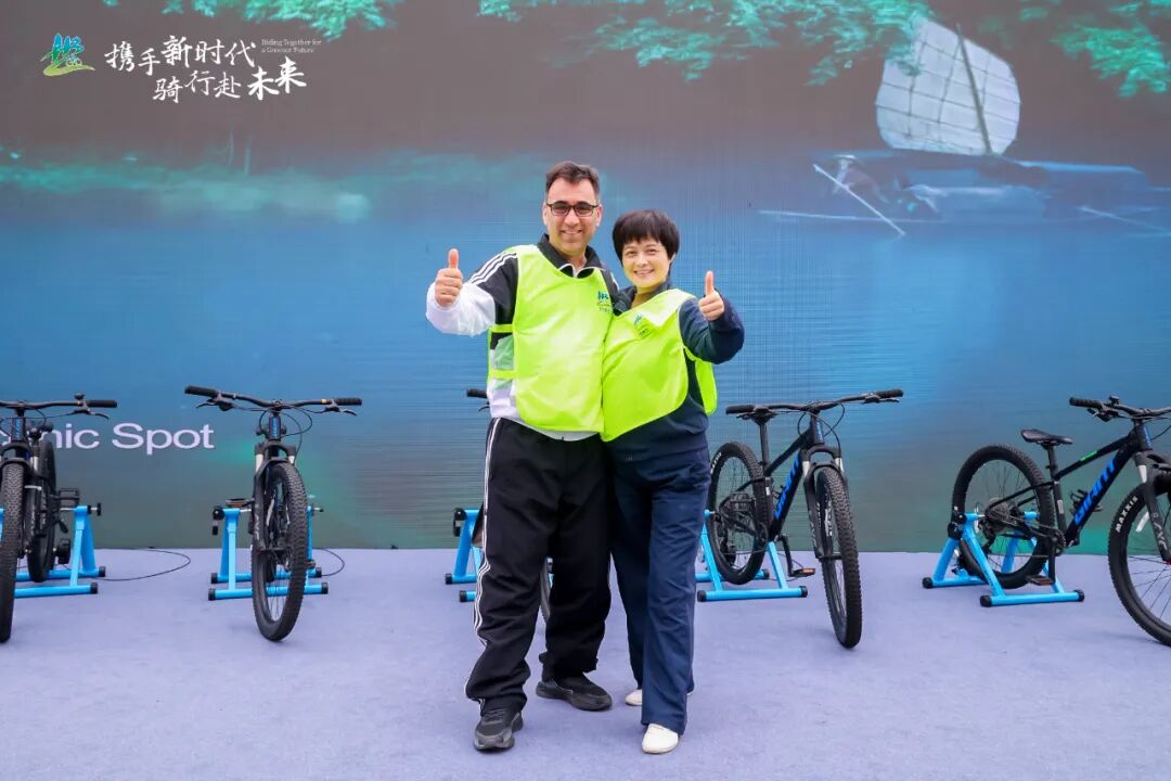 骑行结束后,中外嘉宾合影。