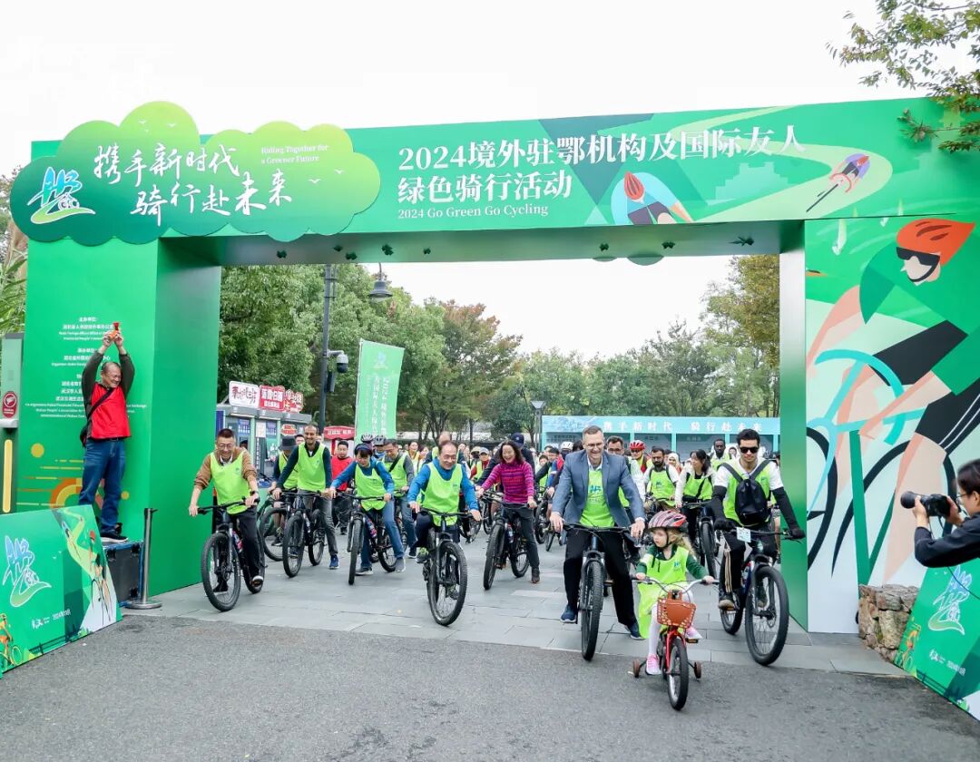 10月27日上午,“2024境外驻鄂机构及国际友人绿色骑行活动”在东湖绿道举办,法国、美国、韩国、英国驻武汉总领事馆、香港特区政府驻武汉经贸办、香港贸易发展局、境外驻鄂商(协)会、外国专家及留学生代表等300多名中外嘉宾并肩骑行,感受大自然的馈赠和武汉城市生态建设的绿色成果。