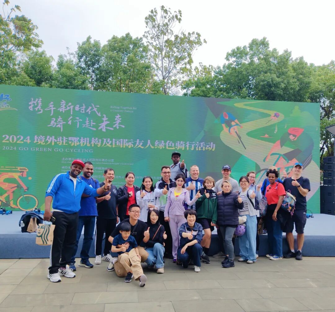 On the morning of October 27, the "2024 Go Green Go Cycling" was held at East Lake Greenway. More than 300 guests from the Consulates General of France, the U.S., the Republic of Korea, and Britain in Wuhan, Hong Kong Economic and Trade Office in Wuhan, the Hong Kong Trade Development Council, overseas associations in Hubei, foreign experts and representatives of overseas students rode together to enjoy nature.