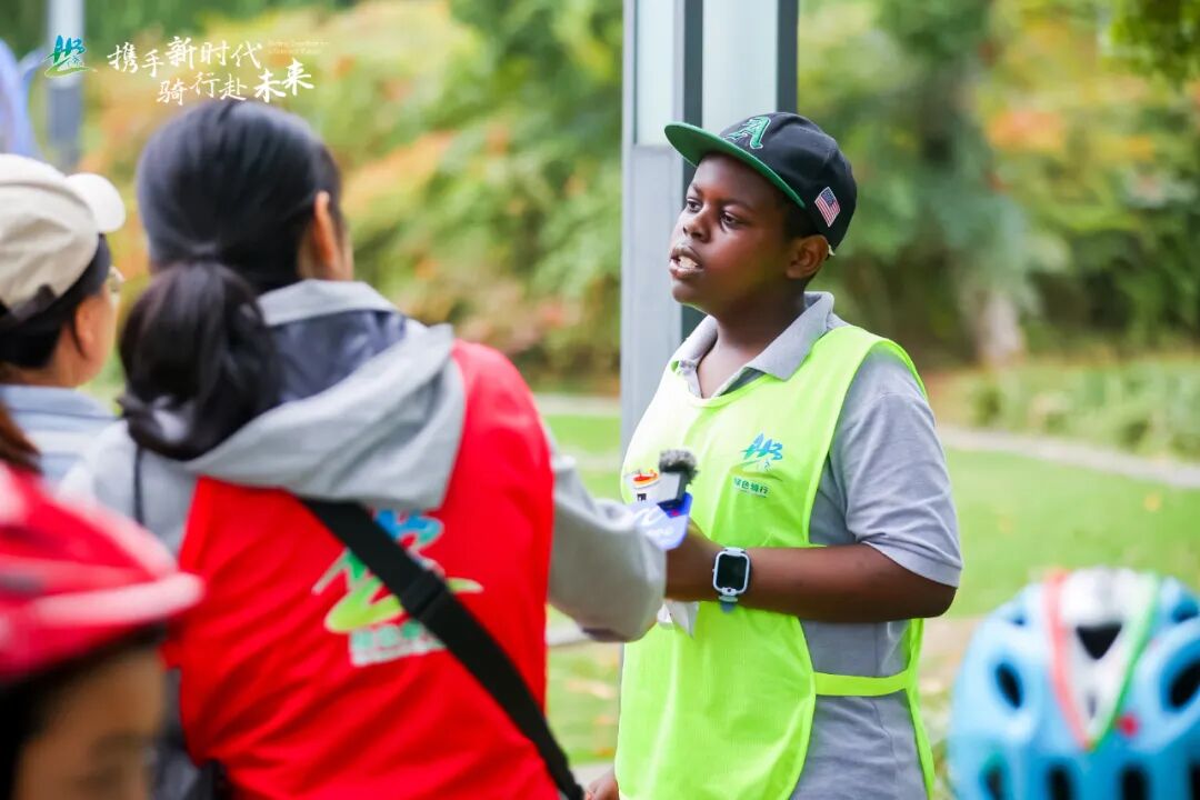 小飞接受媒体采访。当日,中外嘉宾还参观了活动现场的“携手新时代 骑行赴未来”展示区、武汉高端新能源车企东风岚图汽车展示区,亲身感受荆楚地方特色文化和武汉的绿色低碳发展成果。