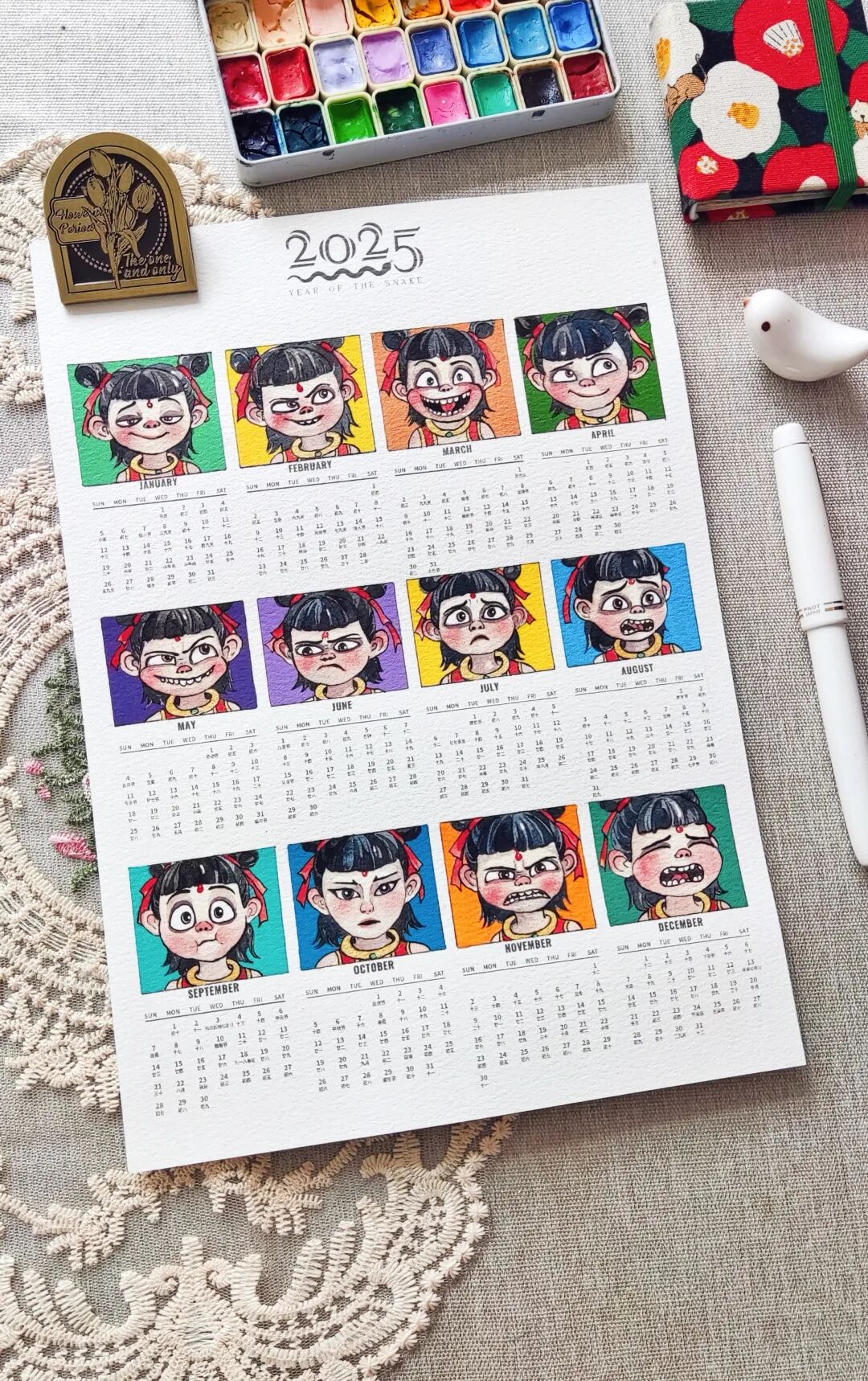 这份年历,是我看完“哪吒之魔童闹海”后的创作,旨在警醒时光匆匆,激励自己珍惜每一刻。2025年,我渴望如哪吒般,以“我命由我不由天”的信念,勇敢面对所有挑战。只要梦想炽热,便能重塑命运,使之符合心中愿景。