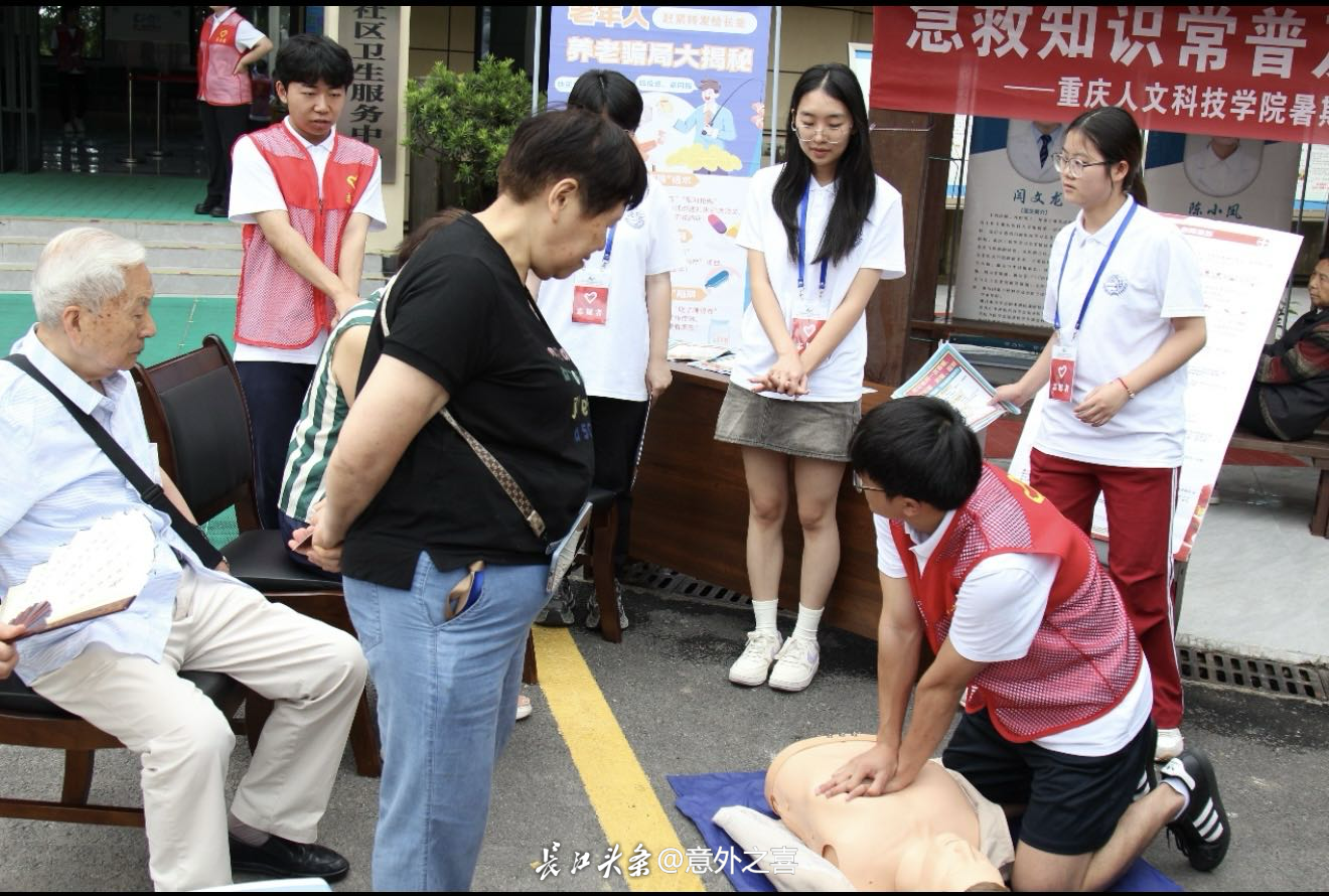 青春星火燃乡野,健康守护不停步“急救不是医护人员的专利,而是每个人的生存技能。”实践团成员表示,团队希望通过此次活动,让急救知识从社区延伸到家庭、景区,形成“人人学急救、处处有帮手”的良好氛围。一场急救知识科普活动,让武隆区仙女山街道的盛夏午后涌动着生命的温度。重庆人文科技学院“急救‘护’乡星火守安康”实践团以护理学专业为笔,以青春热血为墨,在社区卫生服务中心的门前绘就了一幅“人人学急救、急救为人人”的生动图景。这场活动不仅是一次技能的传递,更是一场关于责任、关于爱、关于生命尊严的深刻对话。