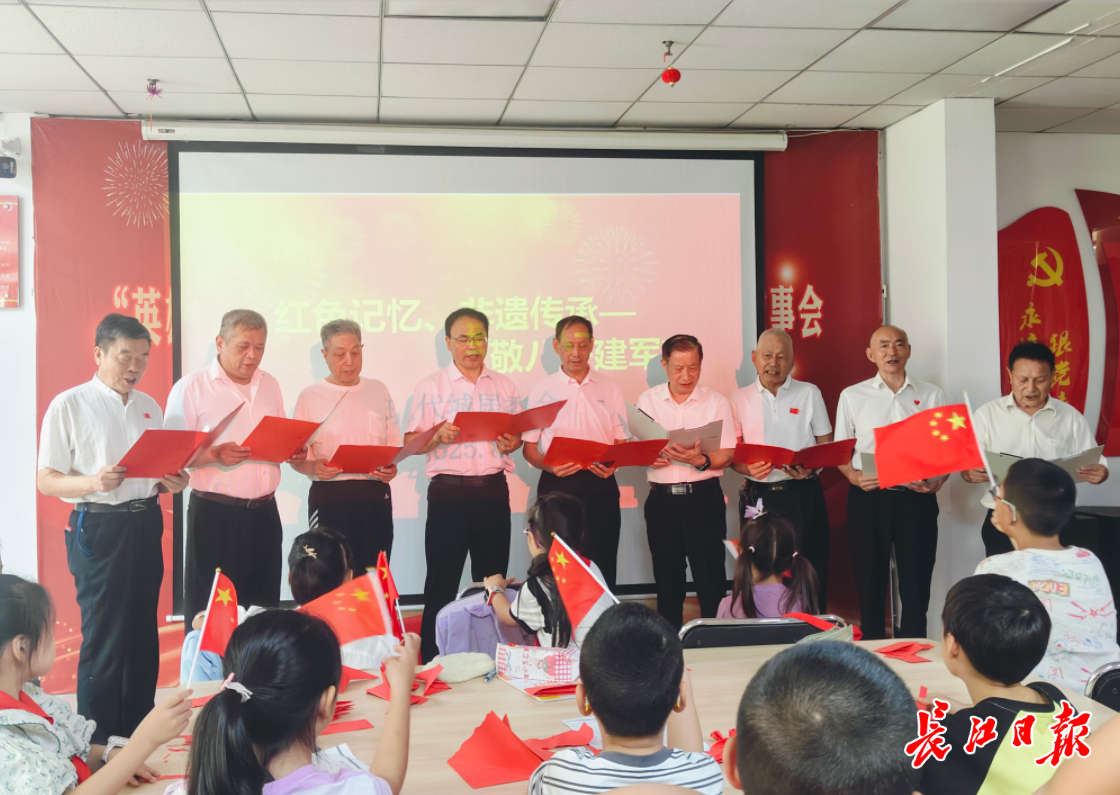 长江日报大武汉客户端8月1日讯 “红旗为什么能在大别山屹立28年不倒?”8月1日上午,百步亭现代城青少年空间内,一群青少年望着屏幕上六安烈士纪念塔的影像,眼中闪烁着好奇与崇敬。当天,12位退役老战士走到孩子们中间讲述革命故事,在互动体验中传承大别山精神,让八一建军节的意义在代际对话中愈发厚重。