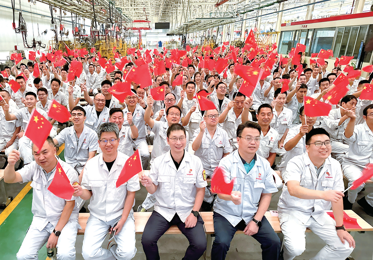 为方便员工收看阅兵式,该公司设置了多个收看点。每当东风猛士的身影出现,员工们都不约而同地摇动手中的红旗,喜悦之情溢于言表。