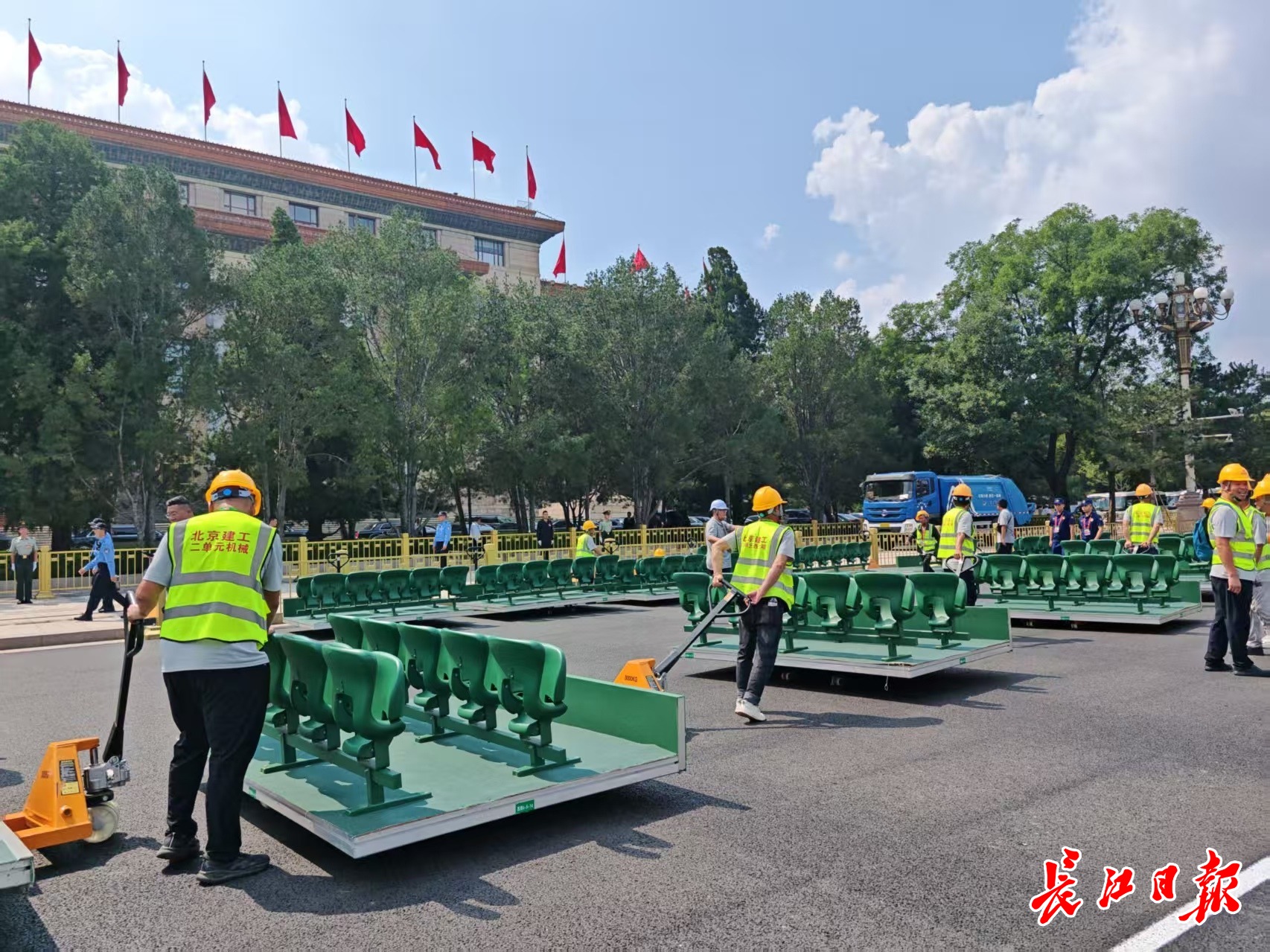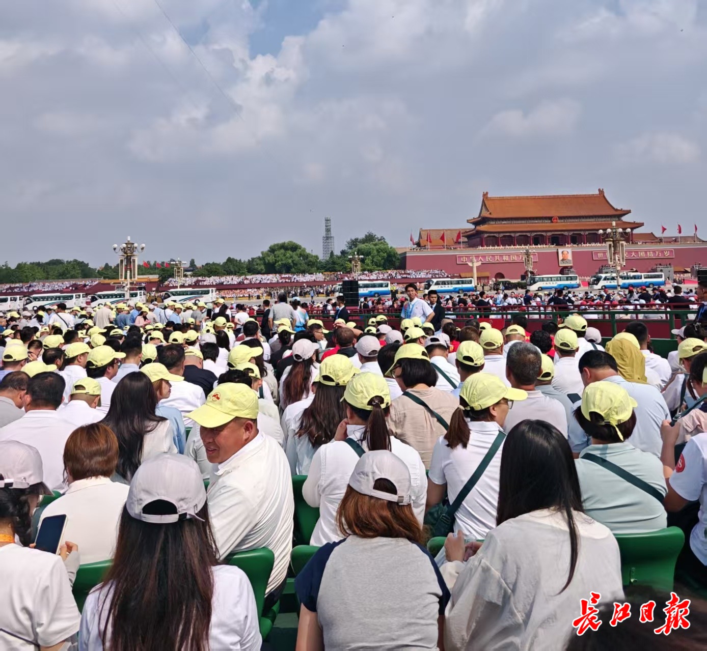 长江日报记者在天安门广场见证阅兵盛典。