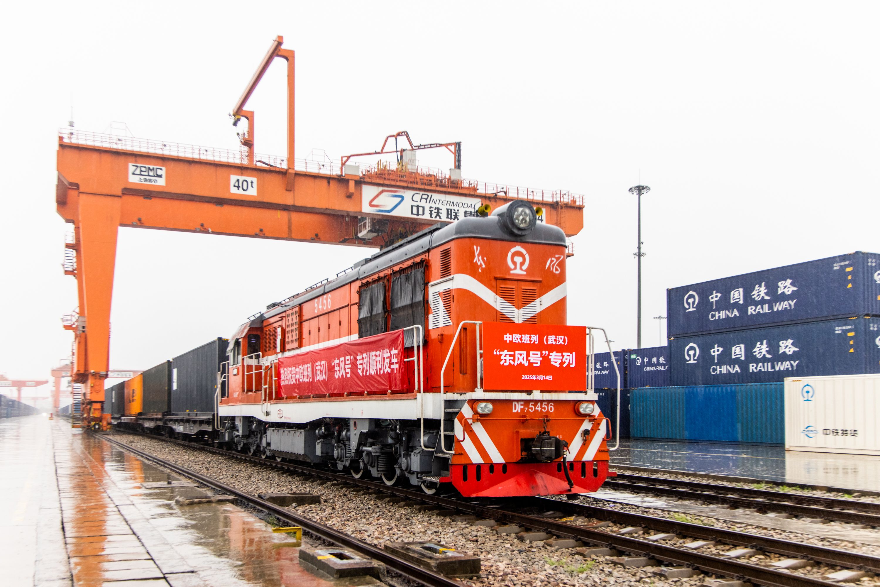 满载岚图汽车的中欧班列(武汉)“东风号”专列出发开往欧洲。通讯员李岿 摄