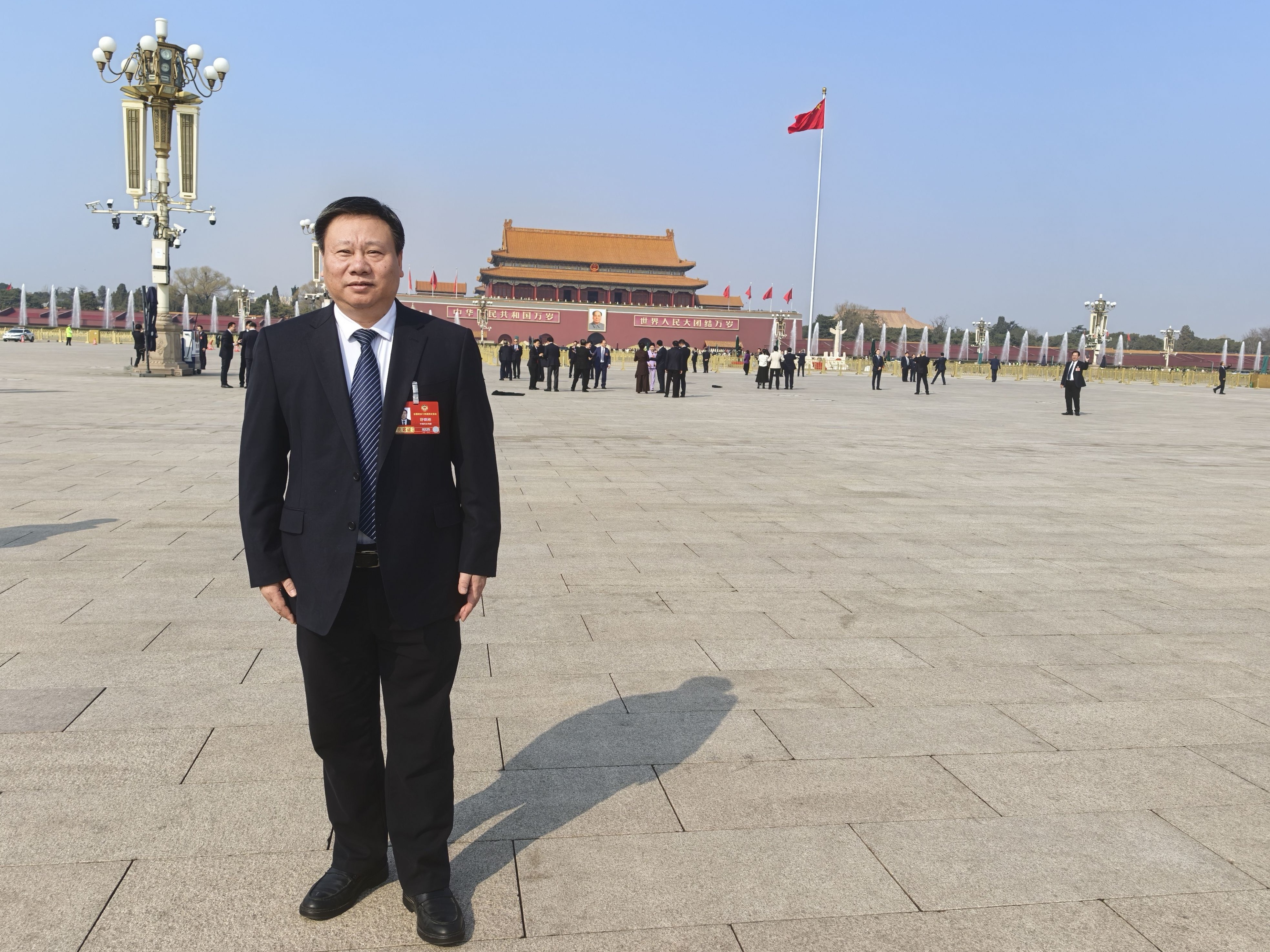 舒晓刚委员在天安门前。本人供图