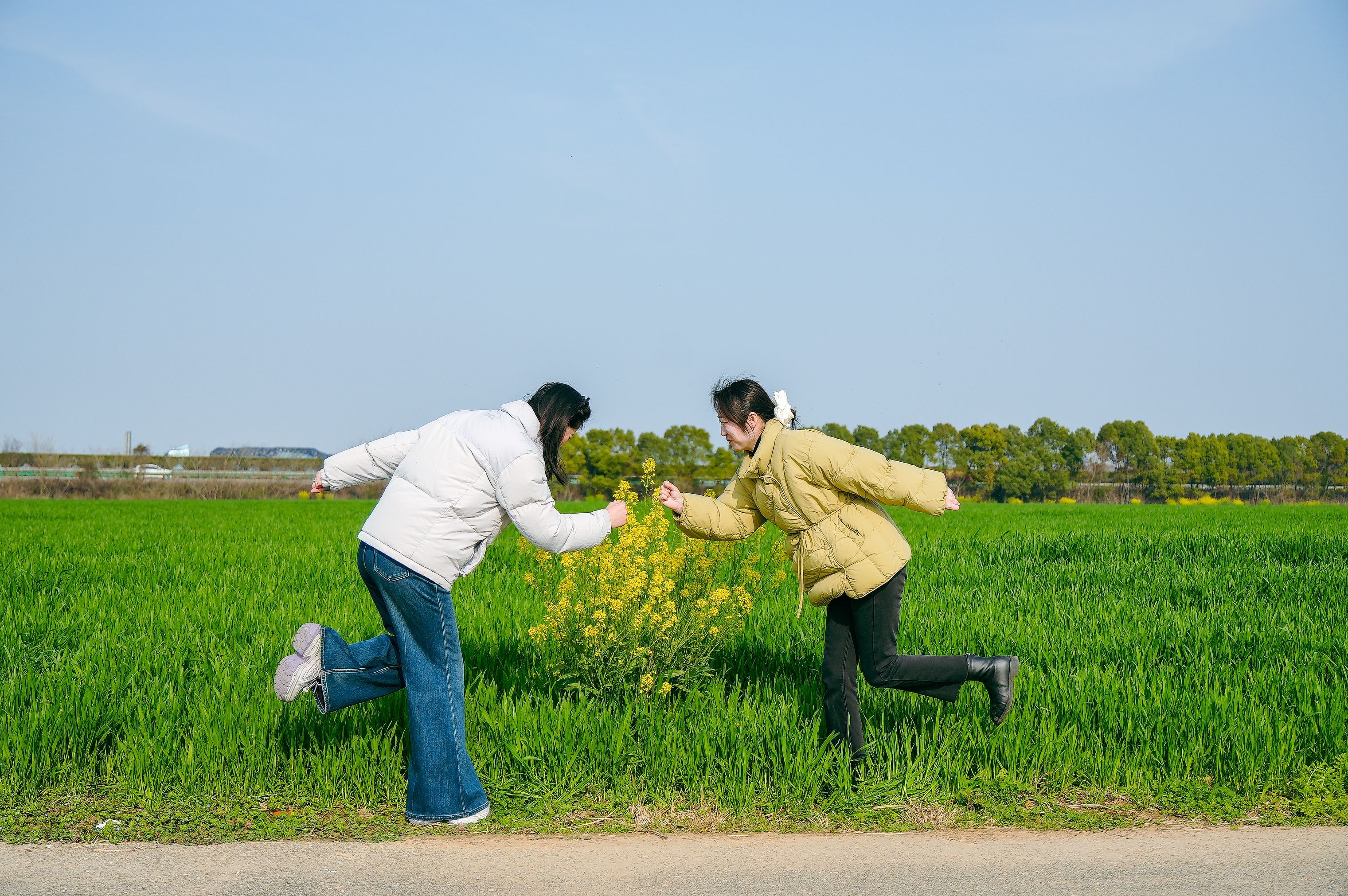 家住莲港社区的肖丹正和她的闺蜜们穿梭于花田,一边欣赏美景打卡拍照。“今天来拍油菜花,顺便再多摘点儿苜蓿菜,我儿子很爱吃!”肖丹蹲在田埂旁,脸上洋溢着收获的喜悦。闺蜜黄丽则在不远处发现了新“宝藏”,摘了一把肥硕的野腊菜。短短一刻钟,大家收获满满,随后尽情摆造型,记录美好的春日时光。