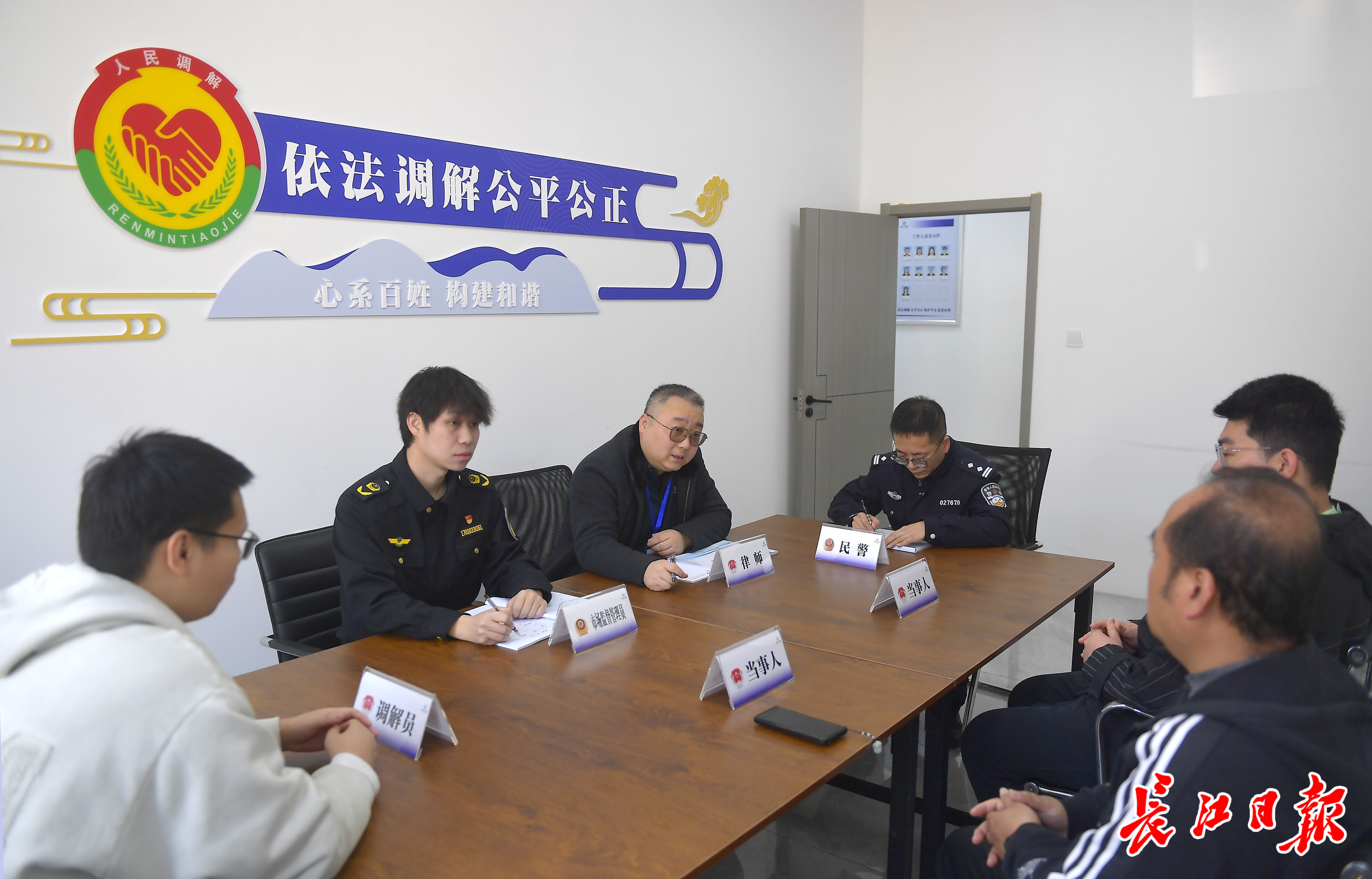 市场监管、司法、公安、律师等在“公法驿”正为消费者调解一起维权纠纷。 记者刘斌 摄