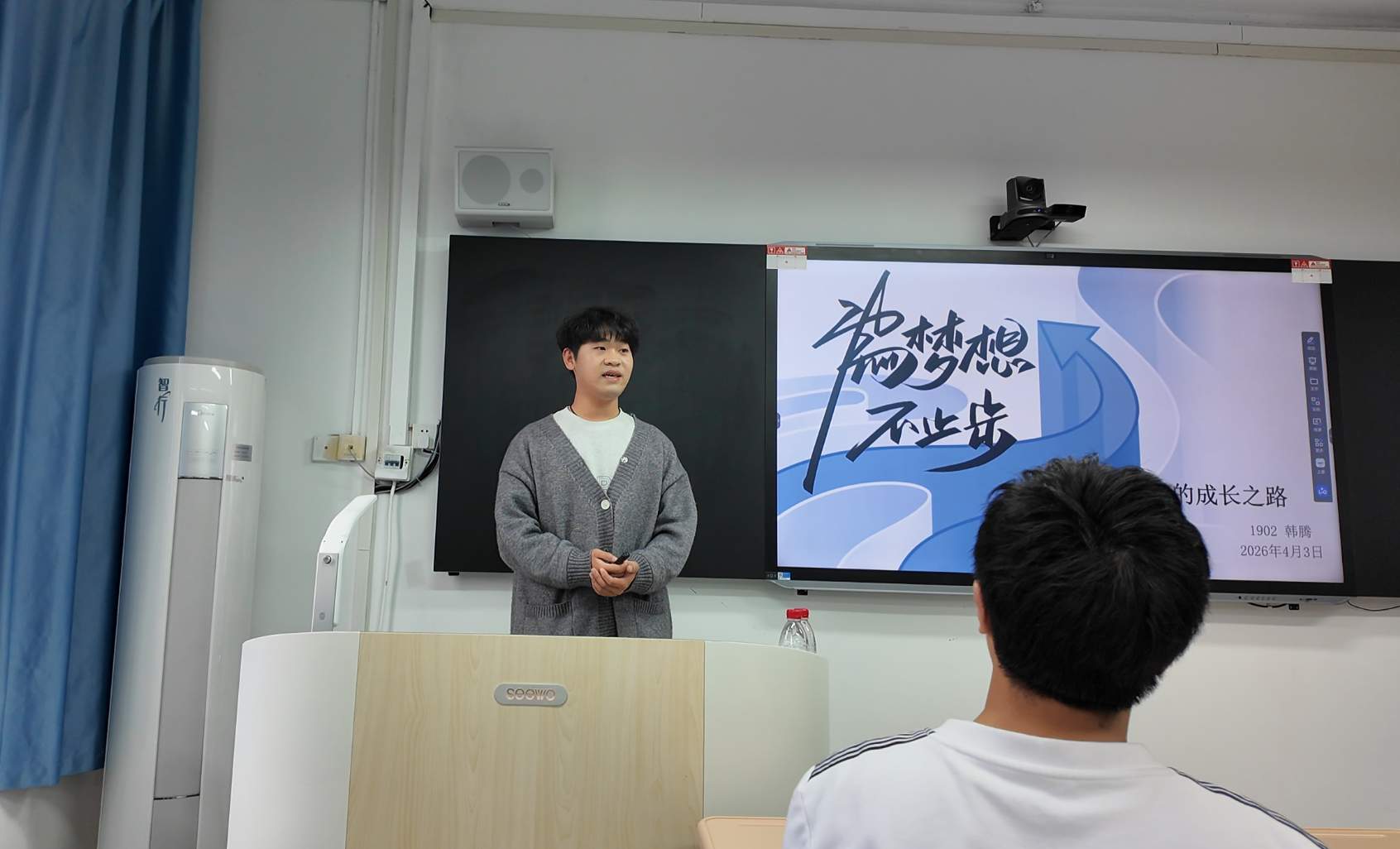 “刚踏入中职校园时,我和很多同学一样,带着中考失利的遗憾,心里满是不安。”分享现场,韩腾坦诚地告诉学弟学妹,在中职学习之初他曾有过迷茫,担心被贴上“学习差”的标签,时常感到自卑、失落。